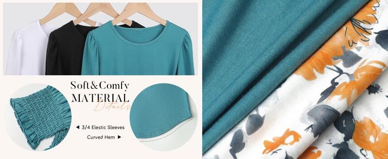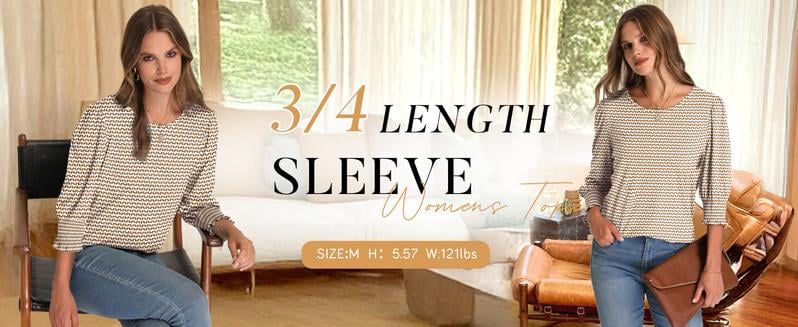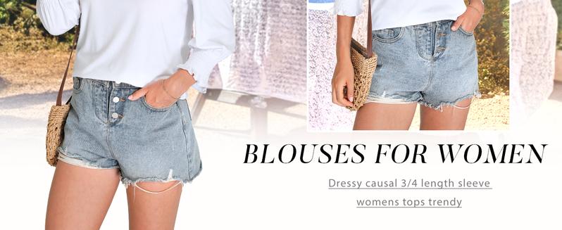 Women Dressy Casual 3/4 Length Sleeve Blouses with Smocked Cuffs